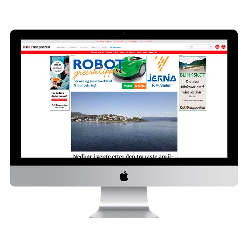 Ei nettannonse er ein grafisk bodskap som syner på www.osogfusa.no. Ved å annonsera i våre kanalar